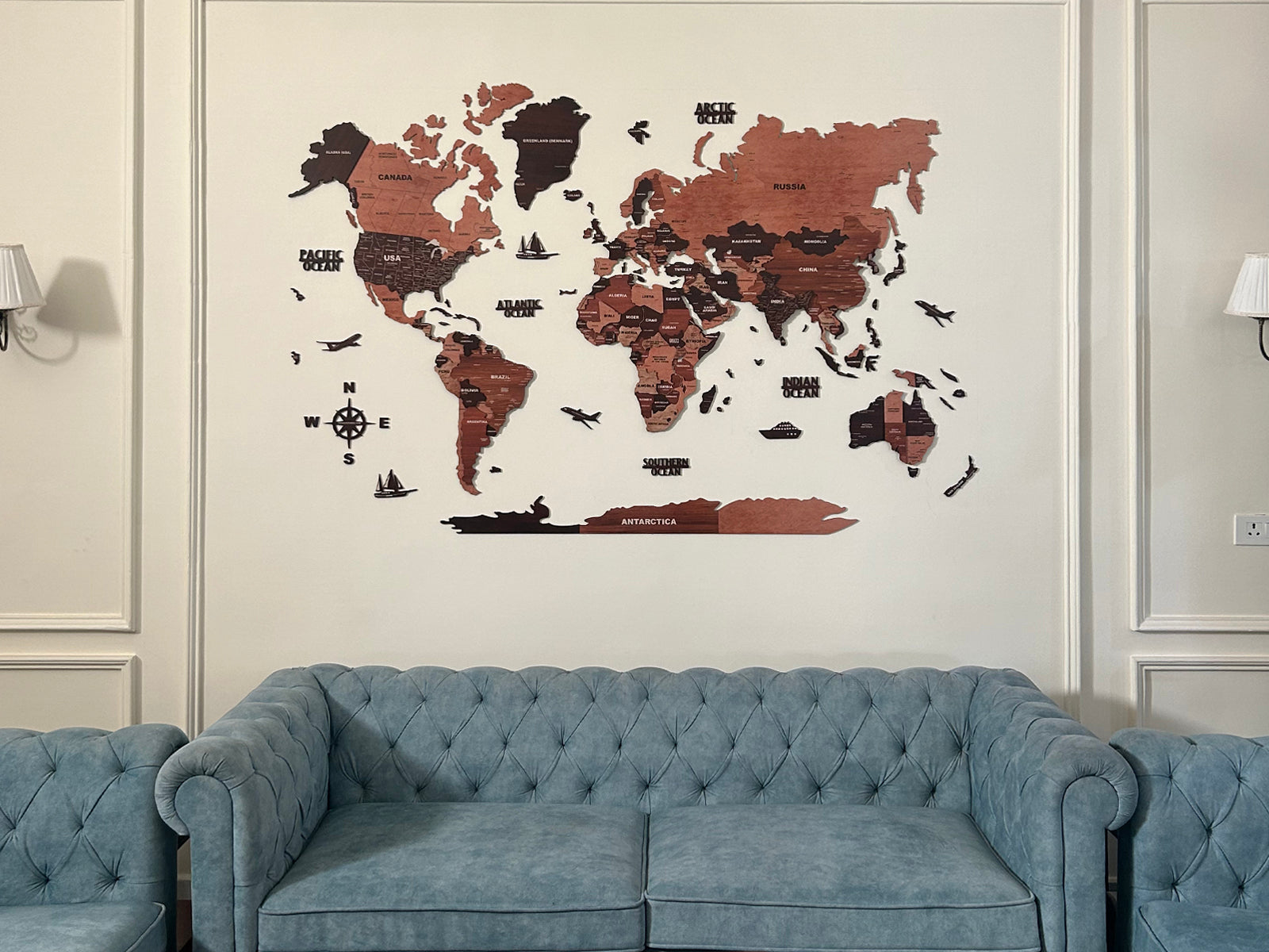 A plain wall may feel lifeless, but add a wooden world map, and it instantly becomes a vibrant centerpiece. Warm...